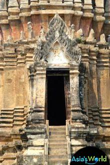 - King Jayavarman V11 of the Khmer Empire was a Mahayana Buddhist and the temple was constructed during his time. Khmer features include Bayon styled roof tyles and laterite foundations. The temple is approached from the east gate entrance. Here today are two images of each of Phra Ruang and Phra Lue the Tai leaders who joined forces to expell the Khmers from the region and establish the cities of Sulhothai and Si Satchanalai. At the entrance to the small entrance is a statue of the four headed Brahma. This is typical of the Bayon style from Angkor and is not found elsewhere in modern Thailand.